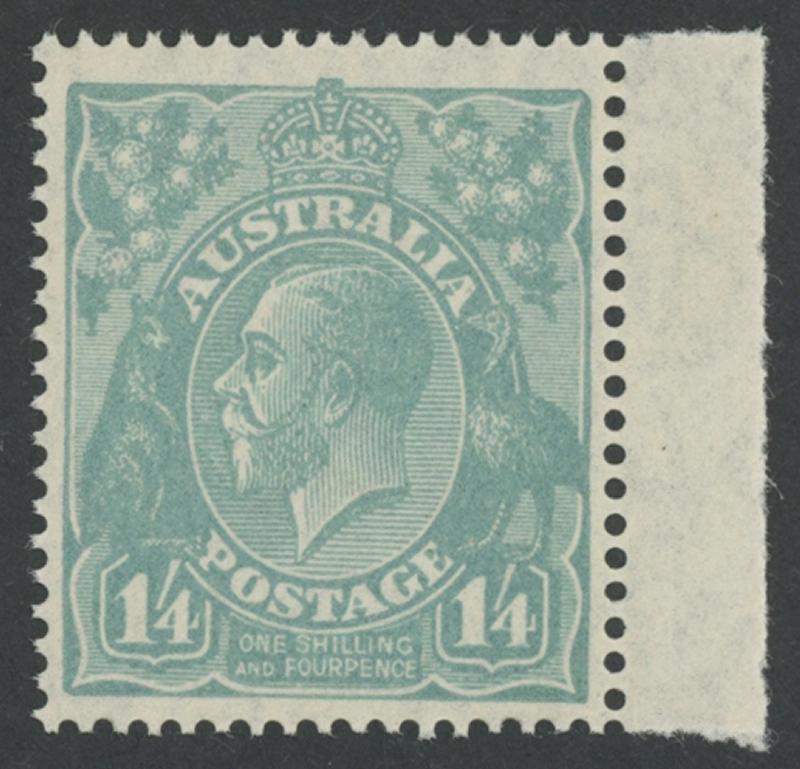 1/4d turquoise-blue ACSC 129B (SG 93) marginal example from the right-hand side of the pane, unmounted, Cat $1250 (£150+ for