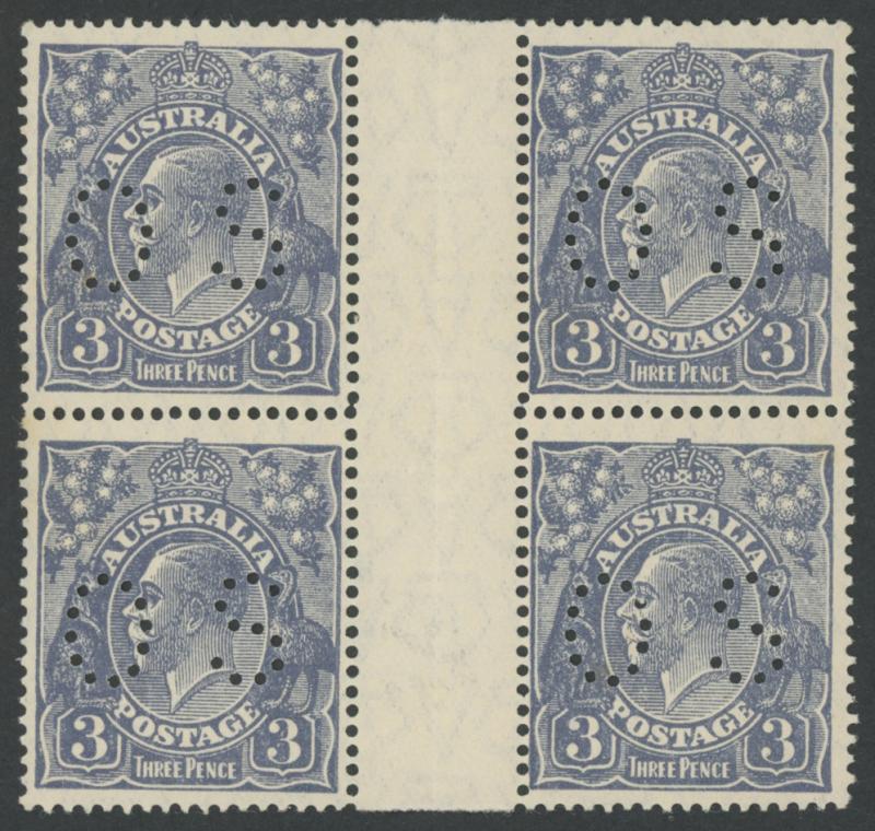3d blue Die Ia Mullett Plates with the Watermark Inverted SG O93w cross-gutter block of 4 the upper-right unit Type B ACSC 106ab