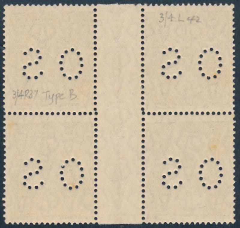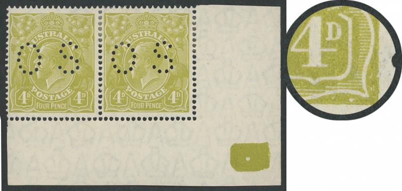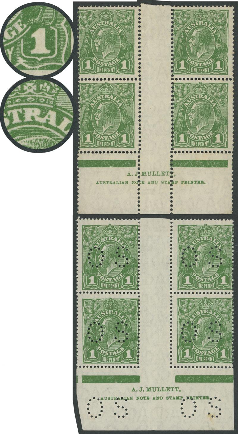 in a punctured 'OS' vertical pair *, Dot before '1' [Pos VI/21] ** in a horizontal pair (scarce unretouched) and Retouched & Thinned Left Frame [Pos VI/21-22] in a punctured 'OS' block of 8 **, 'Secret Mark' [Pos VII/1] marginal single ** (scarce