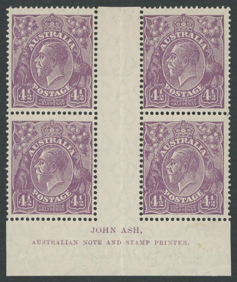 for Plate 3 with White Flaw in Right Frame and for Plate 4 with 'Ferns' & 'RA' Joined and with 'RA' Joined Retouched punctured 'OS' (these two both with a couple of minor aging marks), and John Ash Imprint blocks */** for Plate 1 'N' over 'N' in a
