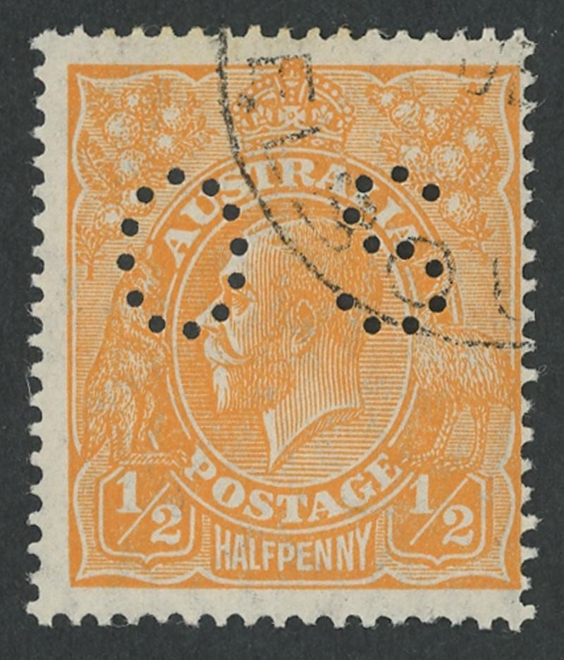 ½d orange SG O88 CTO with Melbourne cds corner cancel, large-part gum lightly mounted, Cat $500 (£190 for postally used). Ex David