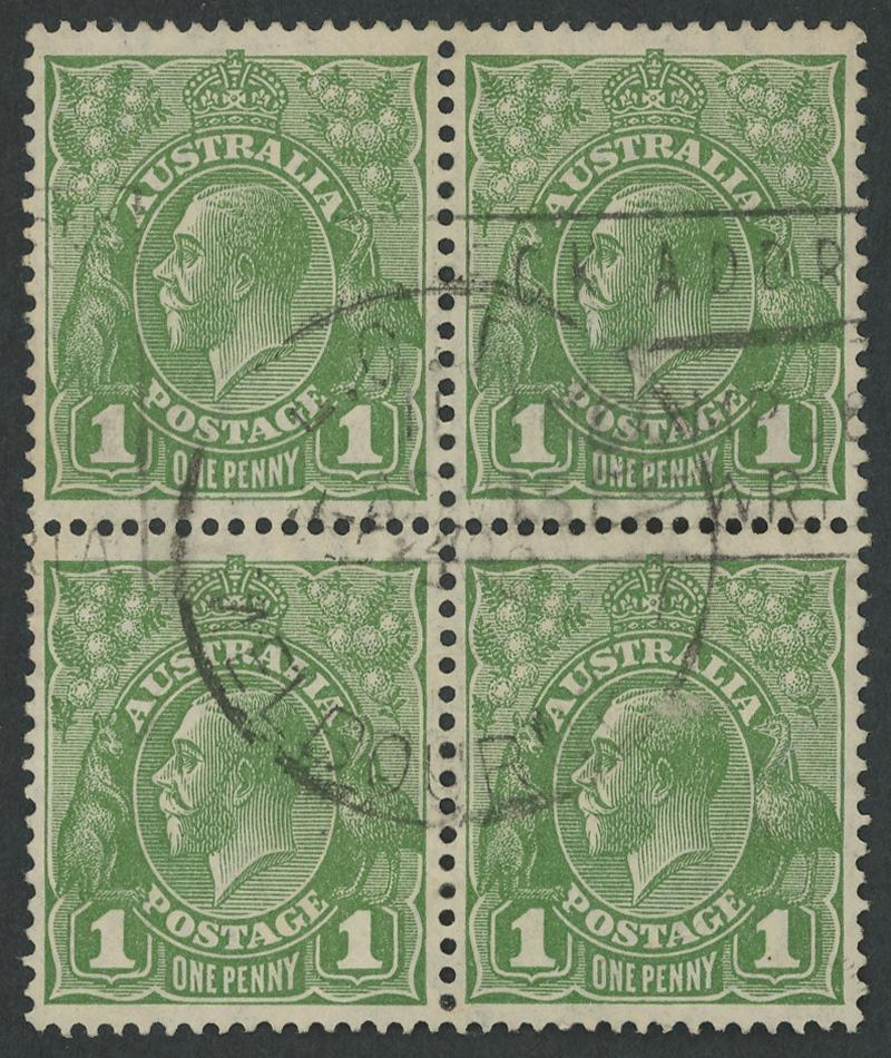 1d green Plate 1 Die II ACSC 81(1)i (SG 95b) block of 4, well-centred, light Melbourne cds & machine cancels almost completely