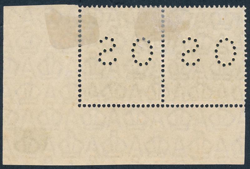 4d olive ACSC 115b (SG O94) horizontal pair from the lower-right corner of the sheet with Plate Dot in the margin, right-hand unit