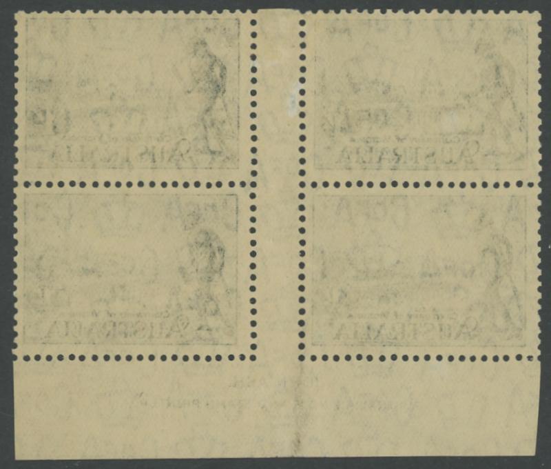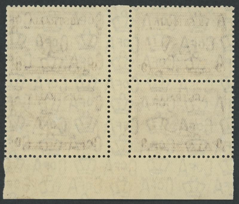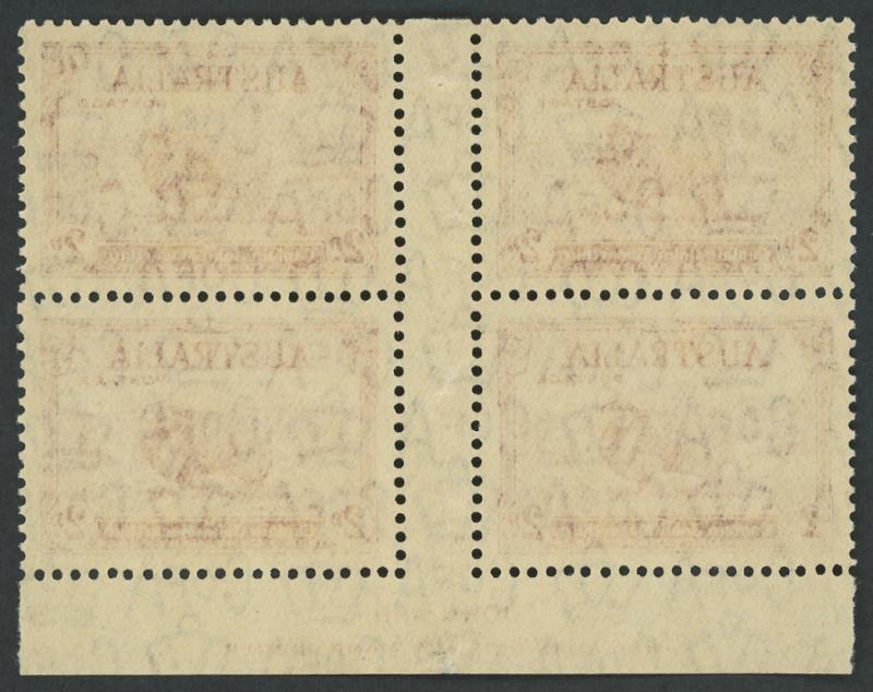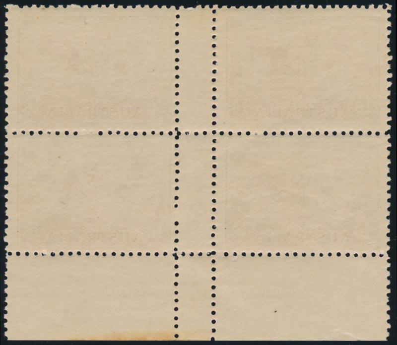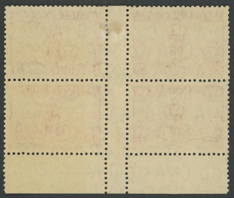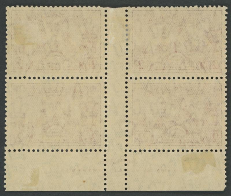 1936 South Australia Centenary 2d red SG 161 John Ash Imprint block of 4 the lower-right unit with Retouched Sky below 'AU' of