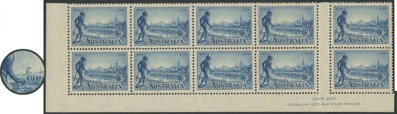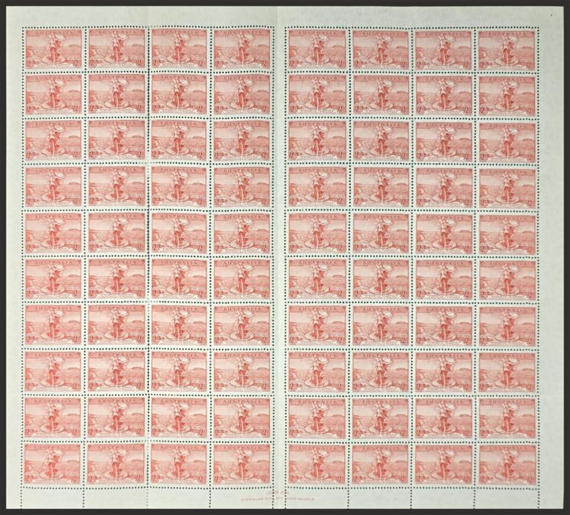 the upper right corner and complete John Ash Imprint ACSC 169zr at base, well-centred, minor perf reinforcing affecting a dozen units in the left pane otherwise unmounted, Cat $750+ for the imprint block & singles plus a substantial premium for the