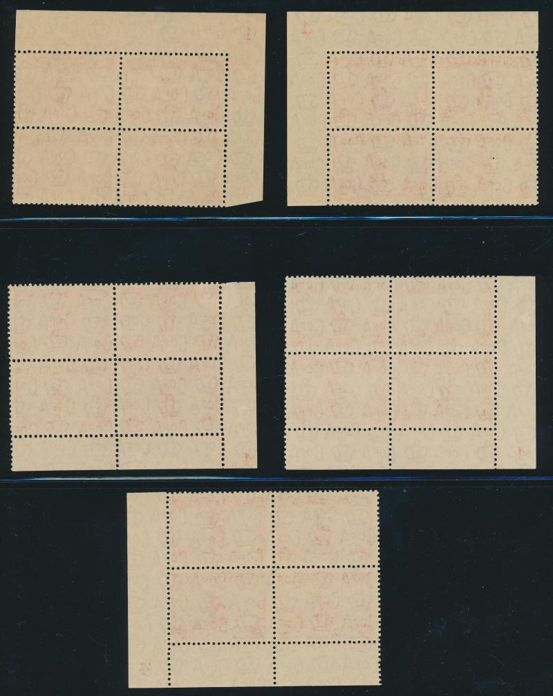 in the margin only, the latter with hinge remainder on the upper units, and WC McCraken Imprint blocks of 4 ACSC 162zf with & without perfs through the lower margin plus Thin Paper WC McCraken Imprint blocks of 4 ACSC 163z with & without perfs