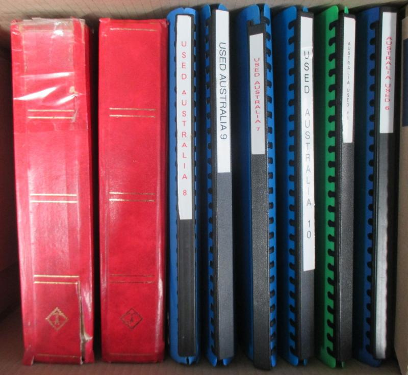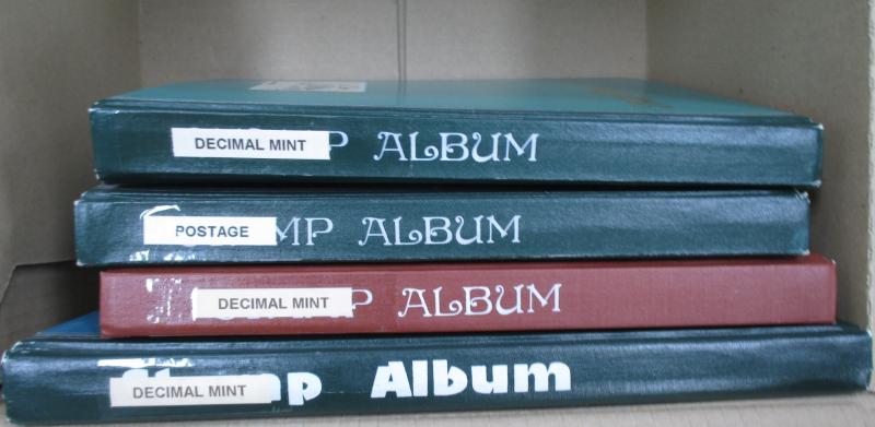 Four cartons of used Decimals on Hagners heavily duplicated up to 2016, also Victoria 3d Half-Length Jeffryes Forgery sheet, then