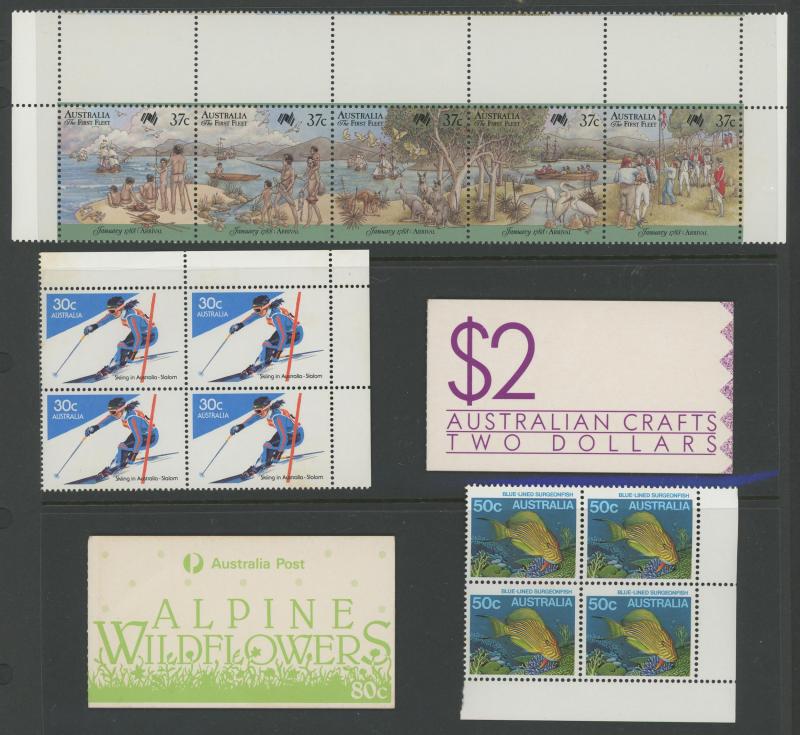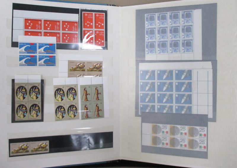 1970s and 1980s blocks of 4 in three stockbooks plus sheets, blocks and booklets. Useful range, plus some FDCs, face value stated