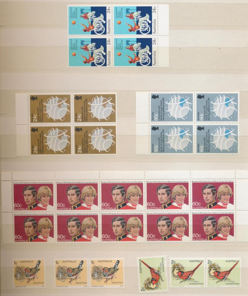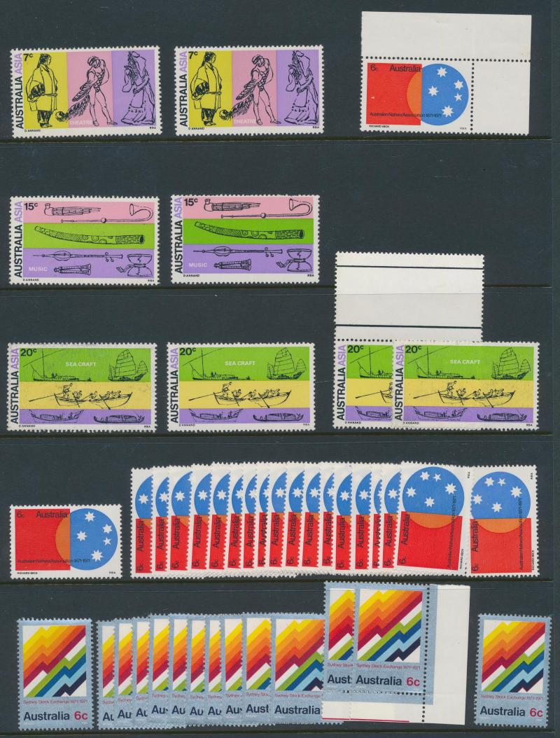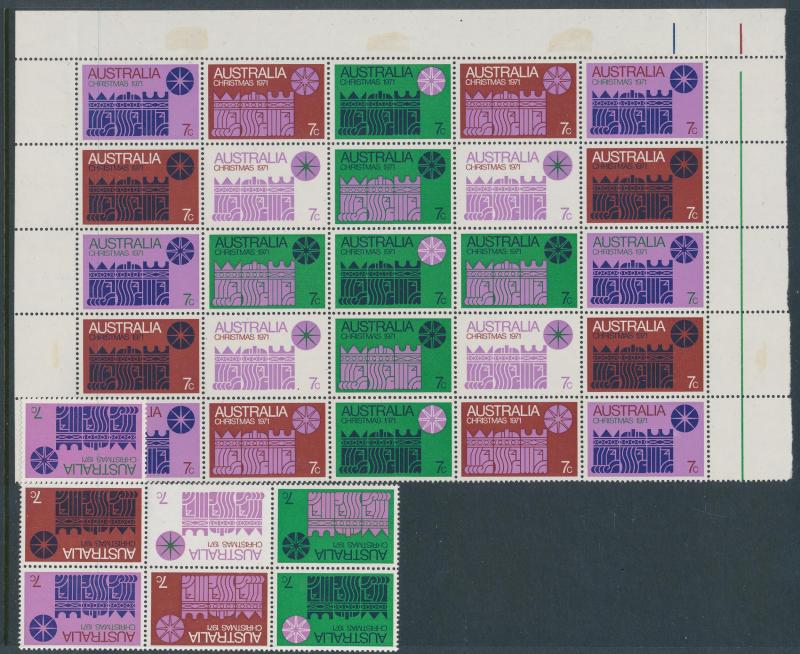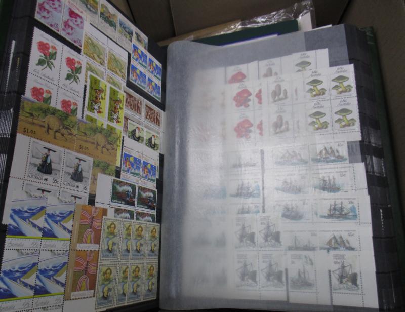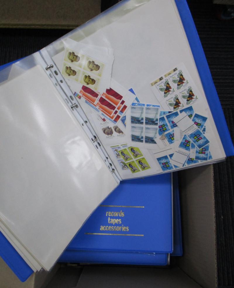 sheets crammed with blocks, gutters pairs, etc, including 1971 Christmas block of 25, face value $1200+. Weighs 13kg.