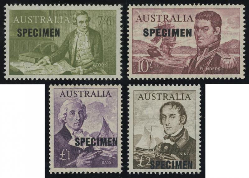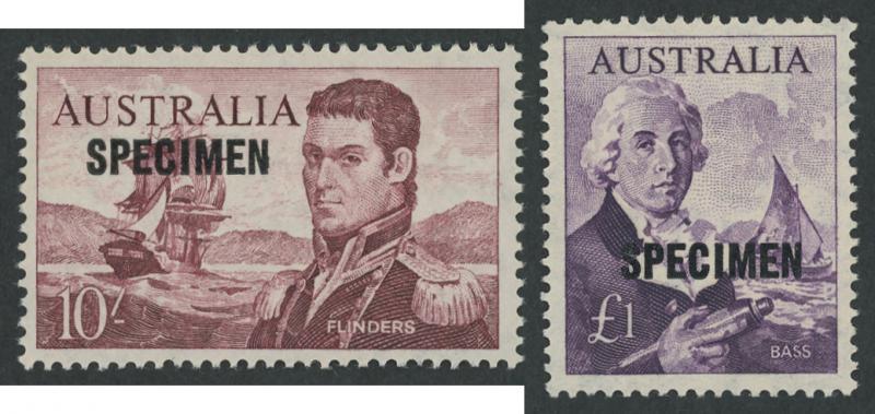 1963-65 Navigators Cream Paper 7/6d to £2 and White Paper 10/- & £1 each with 'SPECIMEN' overprint (the £2 with overprint at