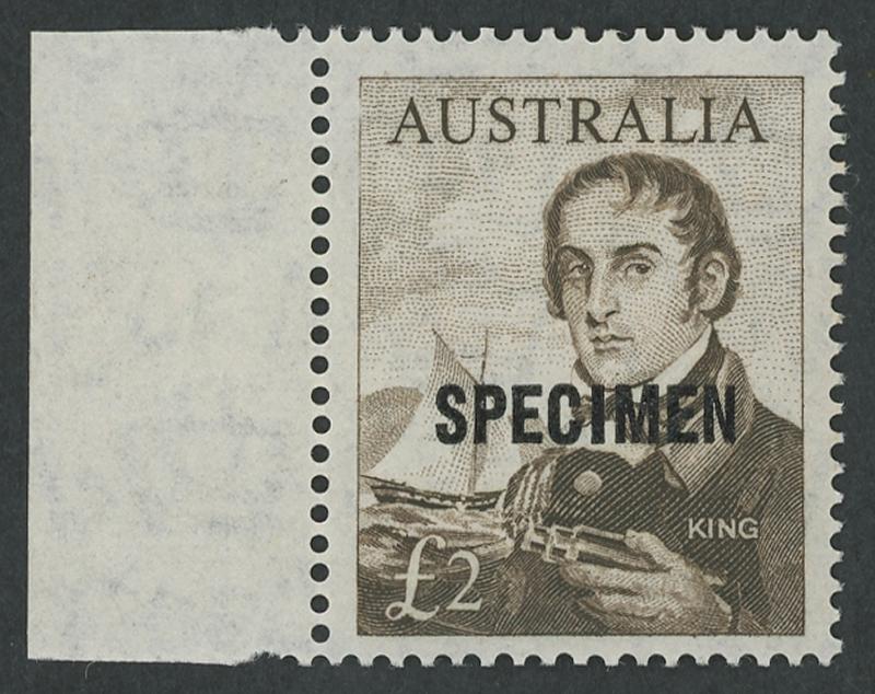 1963-65 Navigators Cream Paper £2 with 'SPECIMEN' overprint at centre ACSC 409x marginal single from the left-hand side of the