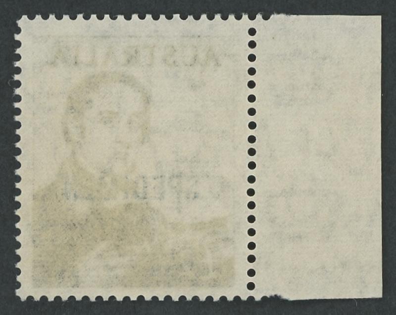 sheet, lightly mounted in in the margin only, the stamp unmounted, Cat $525. The ACSC states "One sheet with a strong, well-centred offset was reported in July 1959". (Image1) (Image2)