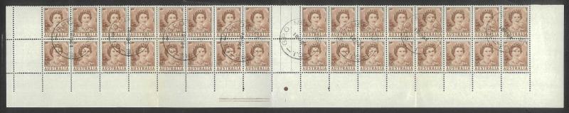 1959-63 QEII Definitives 2d brown Coil Perforation SG 309b marginal cross-gutter block of 32 (16x2) from the base of the sheet with