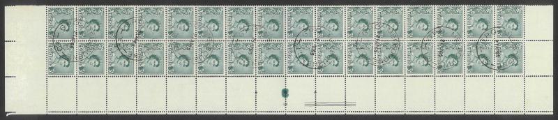 1959-63 QEII Definitives 3d green Coil Perforation SG 311b marginal block of 32 (2x16) from the right-hand side of the sheet with