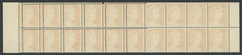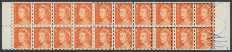1966-73 Decimal Definitives QEII 6c orange SG 387a marginal block of 20 (10x2), the right-hand twelve units (6x2) with Double