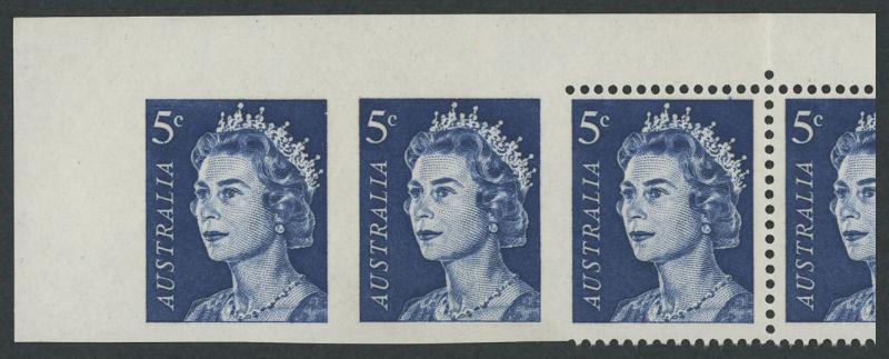 Imperforate and the third unit Imperforate at Left ACSC 444bb (SG 386cb), unmounted, Cat $3500+ (£3000+) for a strip of 3. (Image1) (Image2)