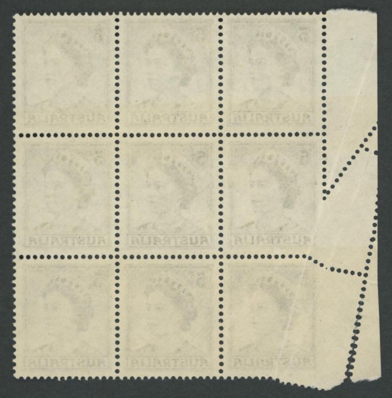 of the sheet, unmounted, Cat $900+ for singles. This is different from the 8mm downwards displacement illustrated in the ACSC. Ex David Adams.