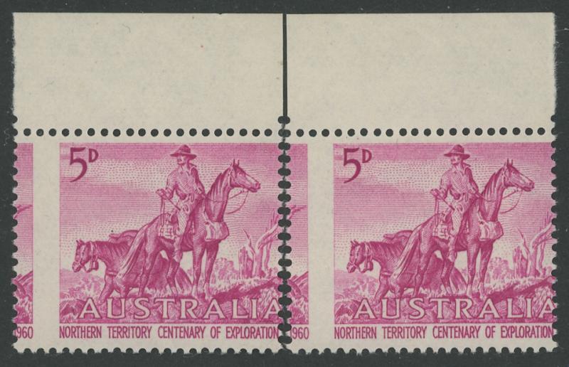 1960 Northern Territory Exploration 5d magenta SG 335 with Grossly Misplaced Perforations Cutting the Design ACSC 378bb separated
