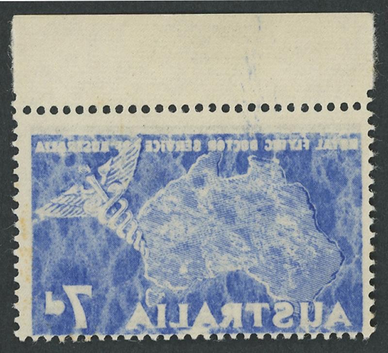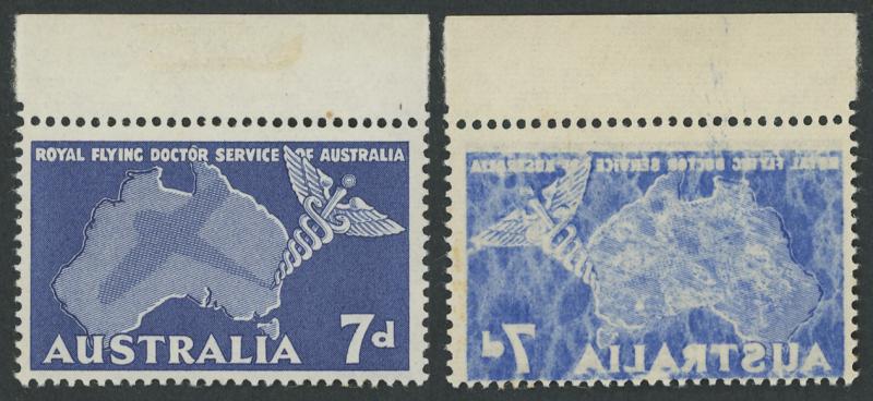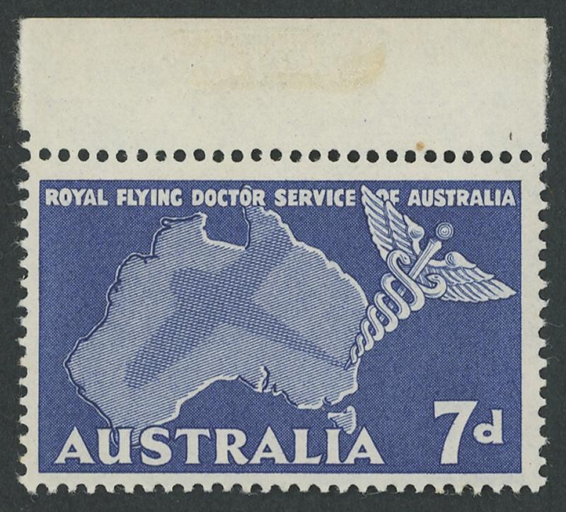 1957 Flying Doctor Service 7d Map SG 297 with Strong Complete Offset on Reverse ACSC 337c marginal example from the top of the