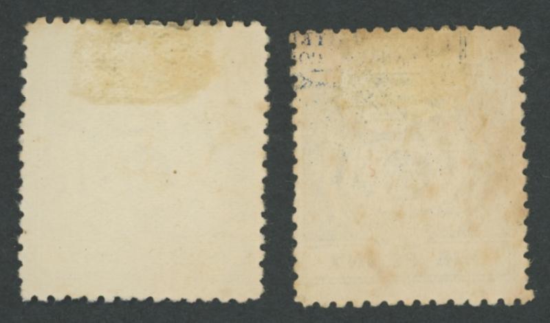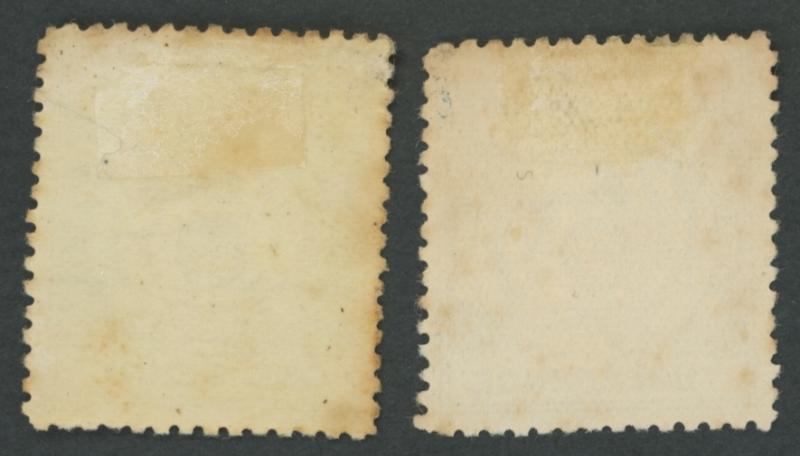 margin. On one stamp the perforations at far right (representing the first line of perforations of the right-hand pane) have been trimmed away [this item] ... The other example has been roughly torn down the right side". (Image1) (Image2)