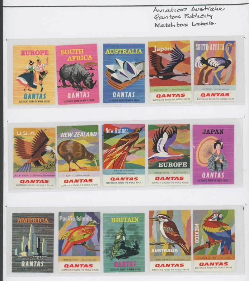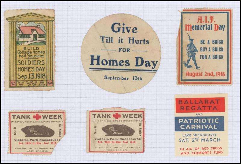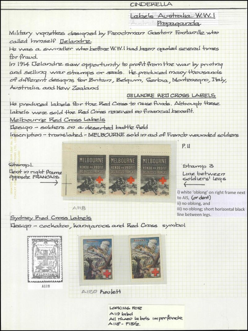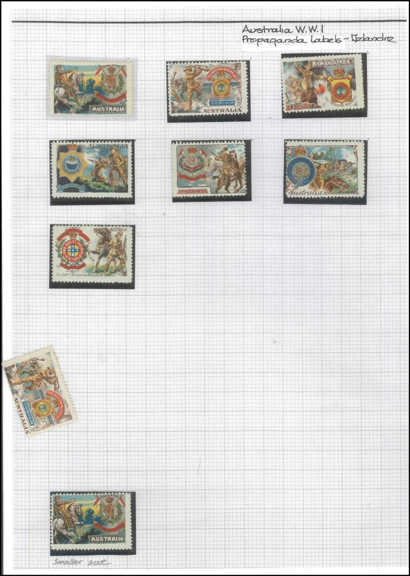 a defective cover); colourful French Delandre labels of Australian subjects x14 including Red Cross corner strip of 3; and a few patriotic labels; condition raher mixed.