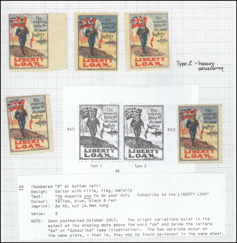 World War I selection with a duplicated group of Liberty Loan & War Loan labels all with Mullett Imprint x39 (one on the reverse of