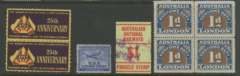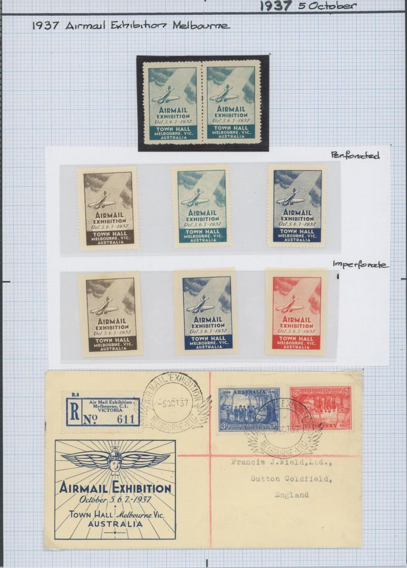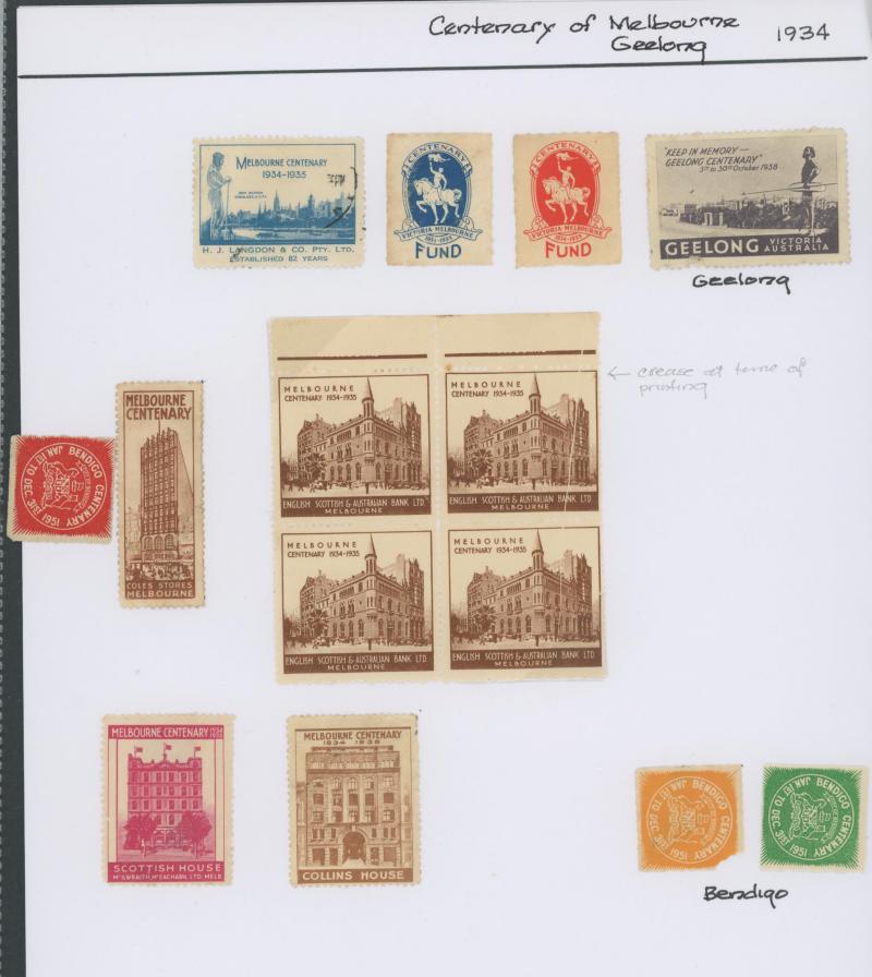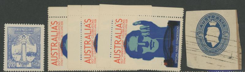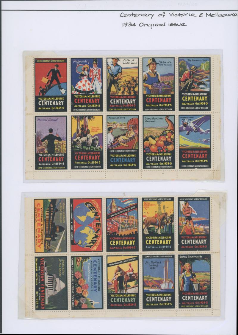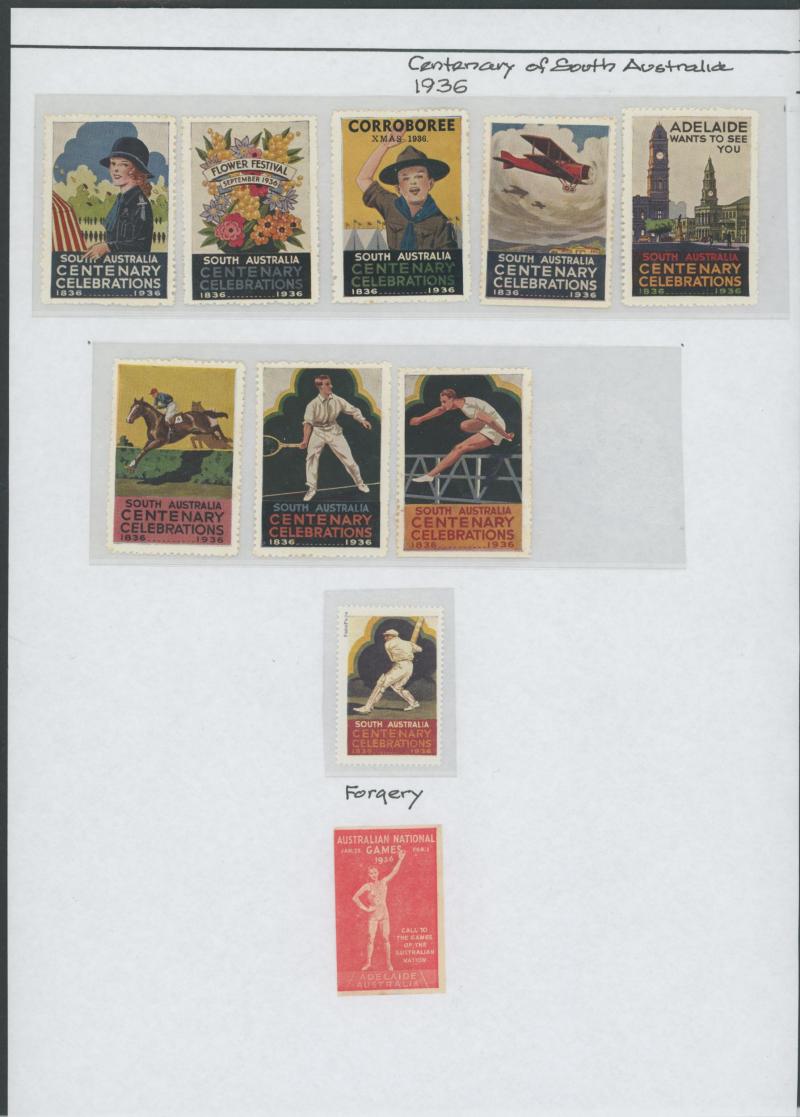 Ausgabe' (modelled on Australia's 1934 Hermes 1/6d) x2 different, Pals group of mostly facsimiles, 1936 Australian National Games, Victoria/Melbourne Centenary selection, tourism labels, etc, condition variable but generally fine to very fine.