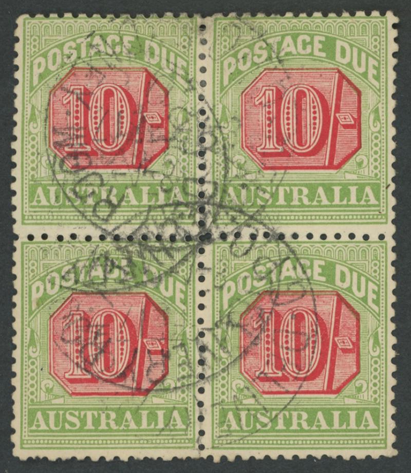 1909-10 Victorian Design Crown/Double-Lined A Watermark Thick Paper Perf 12x12½ 10/- rosine & yellow-green ACSC D91 (SG D72) block