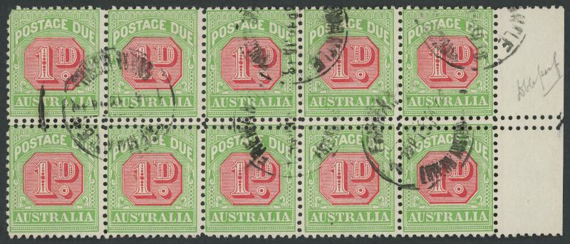 Perforations Horizontally ACSC D96b, a couple of slightly uneven perfs, slightly untidy Fremantle (WA) 1918 cds cancels, Cat $1500+ for ten singles. The ACSC states that "One sheet was doubly perforated between the 2nd and 3rd horizontal rows. A used