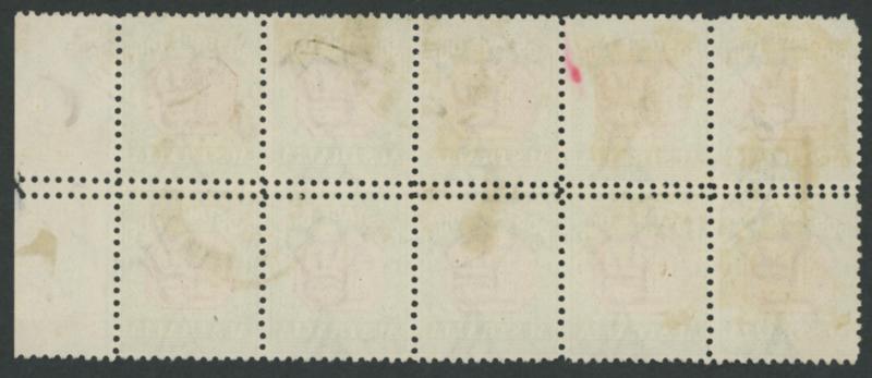 1913-23 Victorian Design Crown/Double-Lined A Watermark Thin Paper Perf 11 1d rosine & green SG D78 block of 10 (5x2) with Double