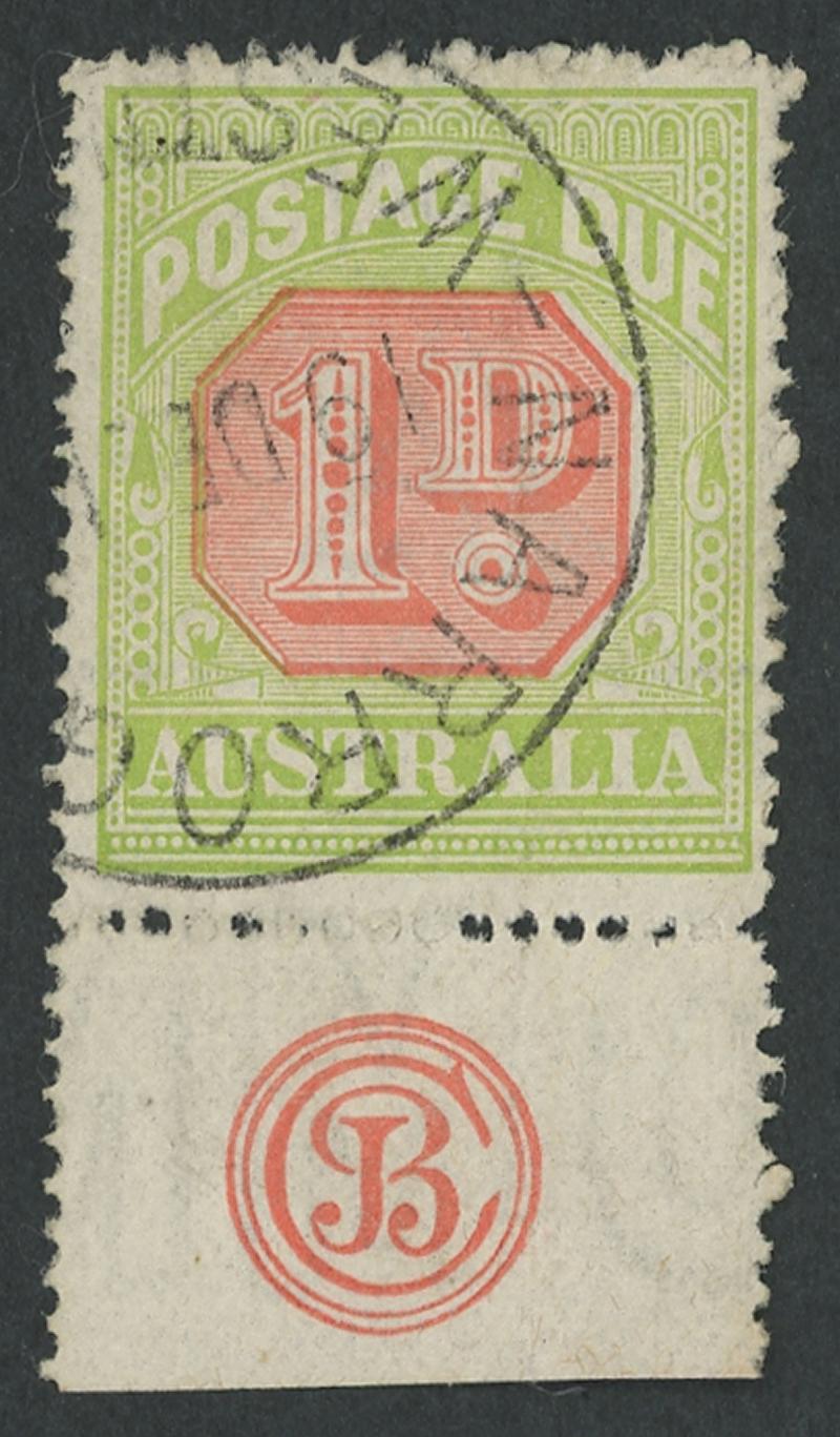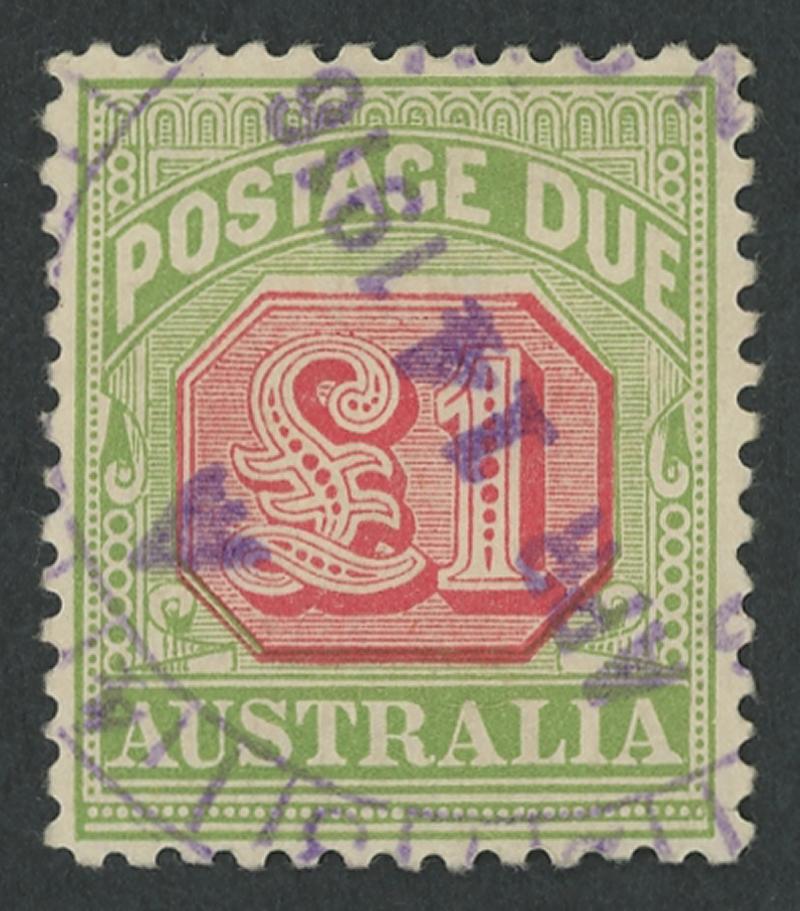 D100a (SG D82a), neat small-part Sydney 1921 cds cancel, Cat $4250 (£3750). The ACSC states that four mint and only two used examples (including this one) have been recorded. A further used example sold at our auction of 25.2.2016 for $4998 (Sale 211