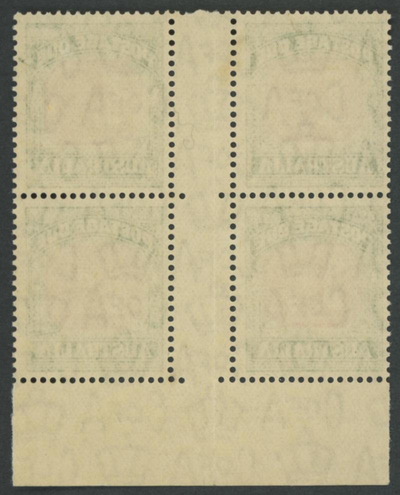 of 4, a couple of slightly 'nibbled' perfs at base, light slightly overlapping 'DELIVERY ROOM/GPO SYDNEY' 1917 cds cancels, Cat $1200+ (£640+) for singles. A scarce commercially used multiple. (Image1) (Image2)