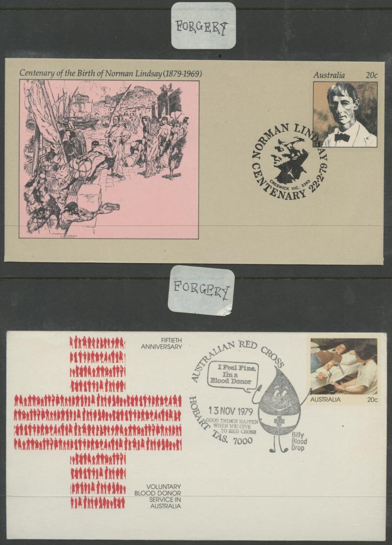 some with unauthorised overprints including 'SPECIMEN' types & Stamp Week Dinners, forgeries of the Norman Lindsay x2 & Billy Bloodclot issues, significant duplication, generally very fine. Weighs 8kg.