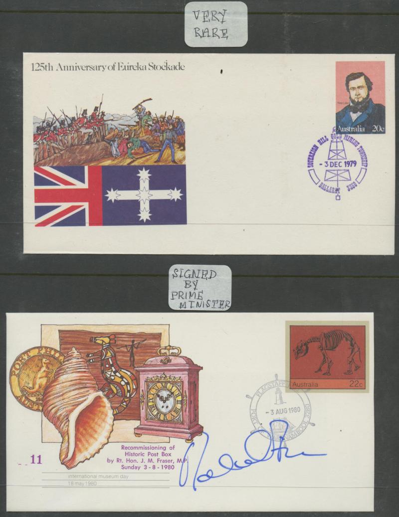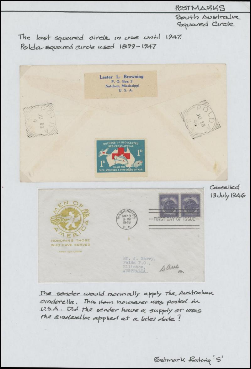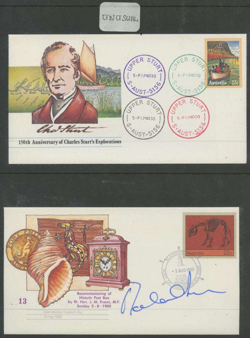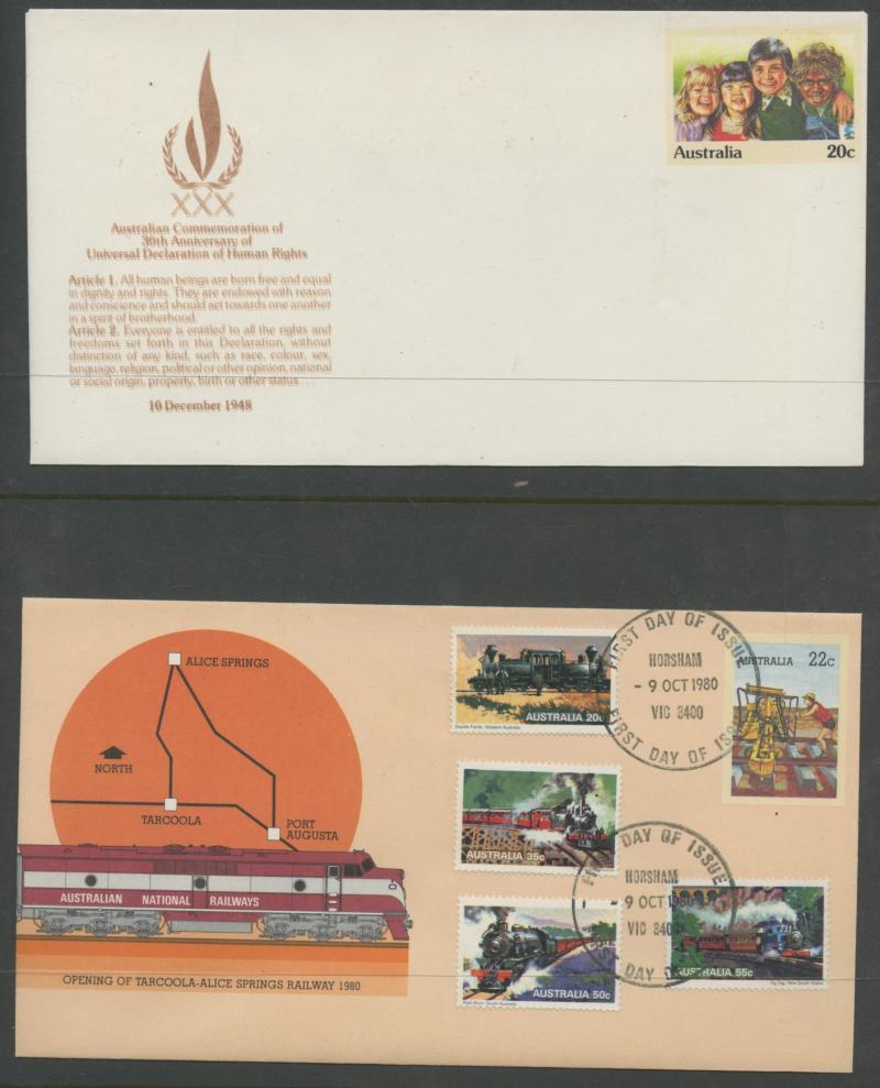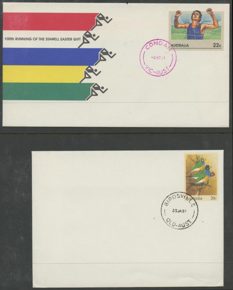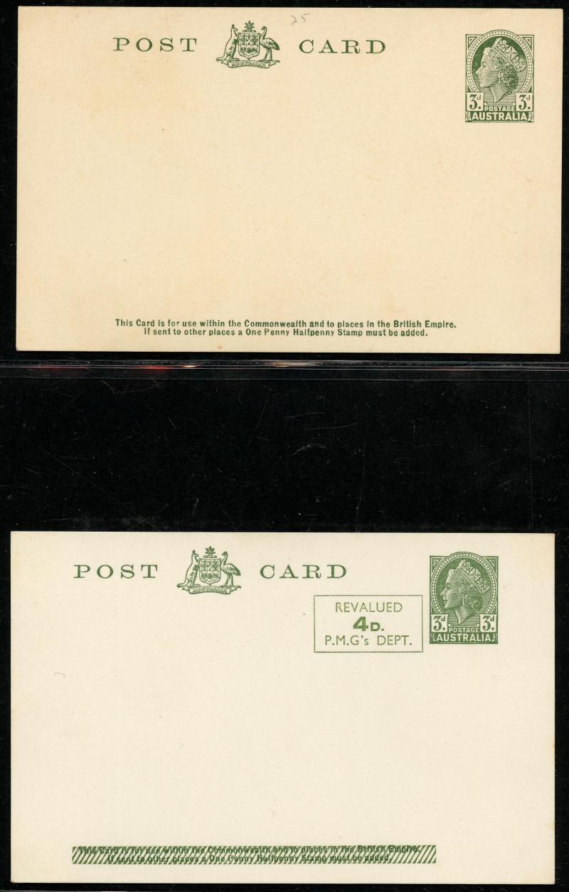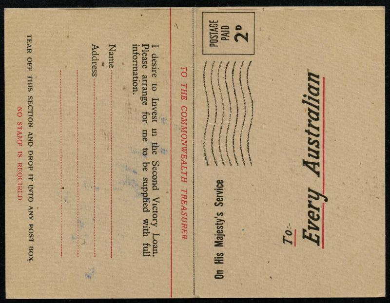 both unused, and KGV 1½d brown with printed 'SECOND CLASS MAIL MATTER', Registered Envelope KGVI 5d with 'A.1.MINE SETTLEMENT/VIC-AUST' cds & manuscript on blue R label, plus a few STO Envelopes for municipalities and OHMS long-format KGV 1d red