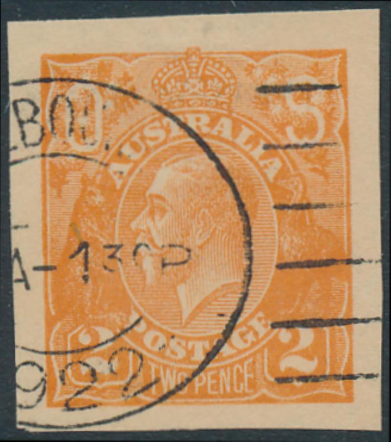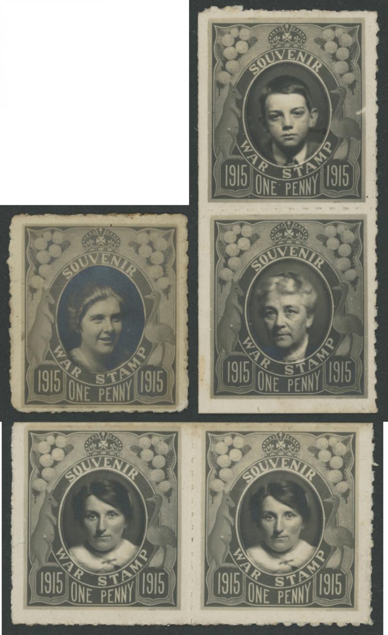 World War I 1915 Stubb's Studios (Melbourne) rouletted 1d portrait stamps based on the KGV Heads design comprising a single