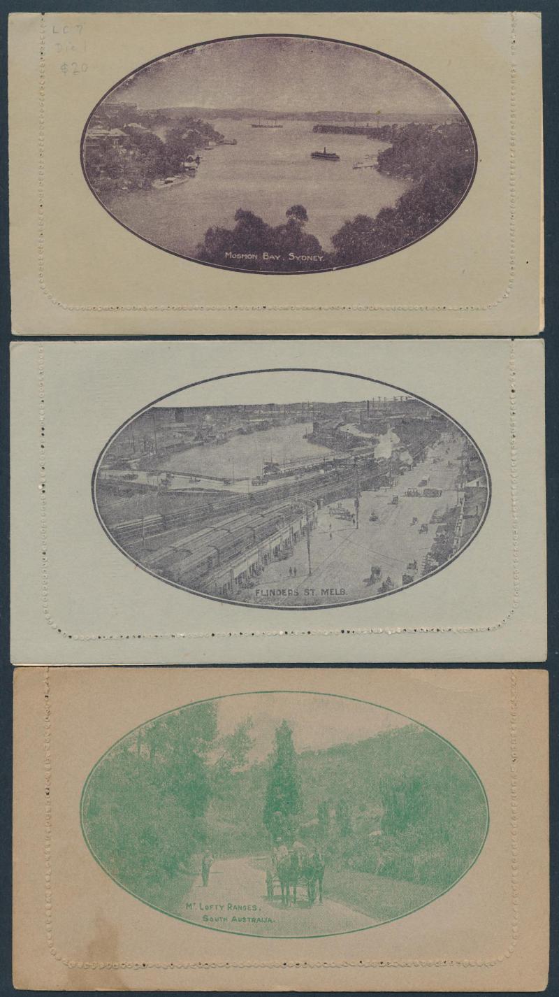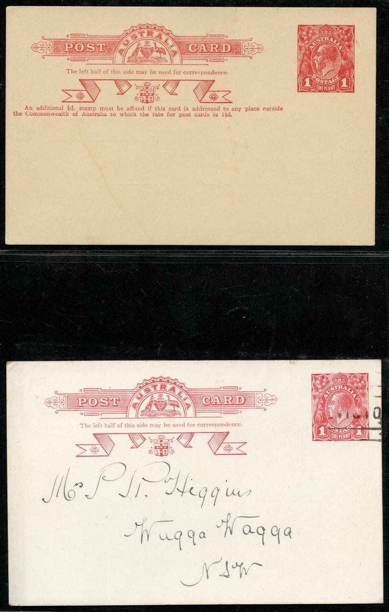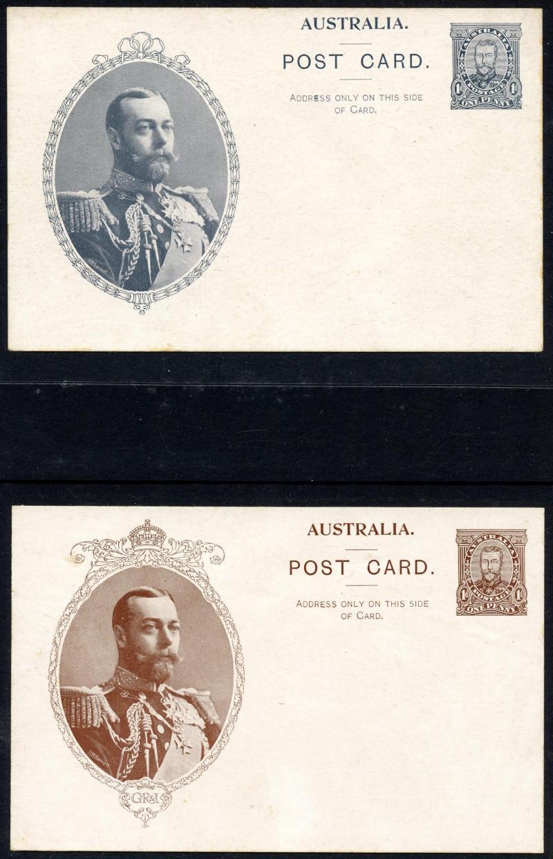 handstamps, Lettercards Kangaroo 1d magenta with oblong 'QUEEN'S GARDENS', Postal Cards 1911 Coronation x5 unused, KGV 1d red with illustrated advertising in blue for 'Glen Valley Tea' , KGV 1d green 'OS'-in-Die plus overprinted 'THREE/HALFPENCE'