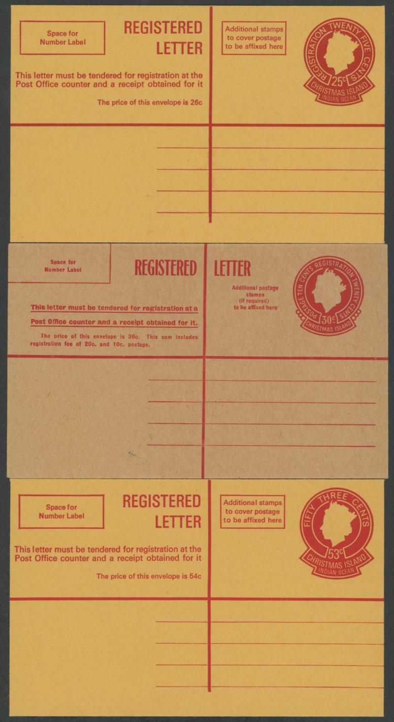 (superb unused), Registration Envelopes KGV 4d on White with Engraved 1d (tonespots), several with 'AR' handstamps, Christmas Island trio, etc, condition variable.