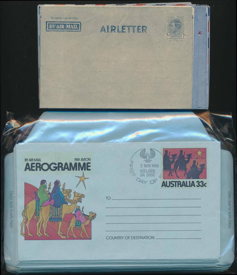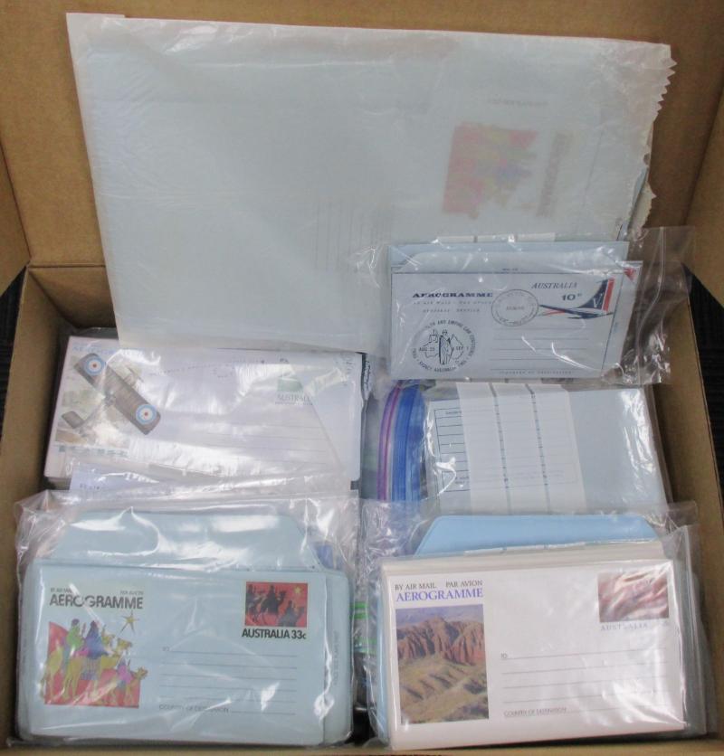 Aerogramme accumulation 1945-2005 of mint or cancelled FDI, with duplication and odd postally used item. Weighs 5kg.