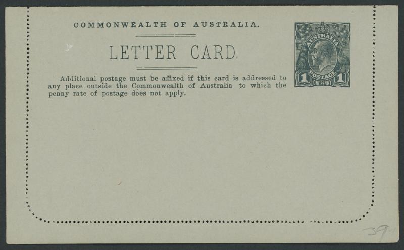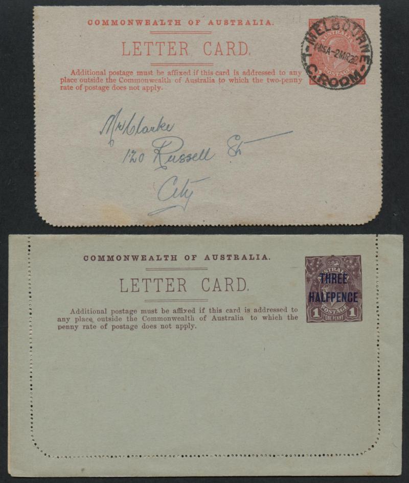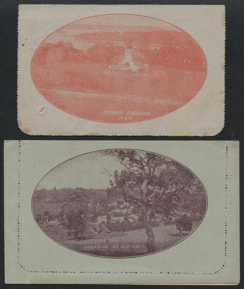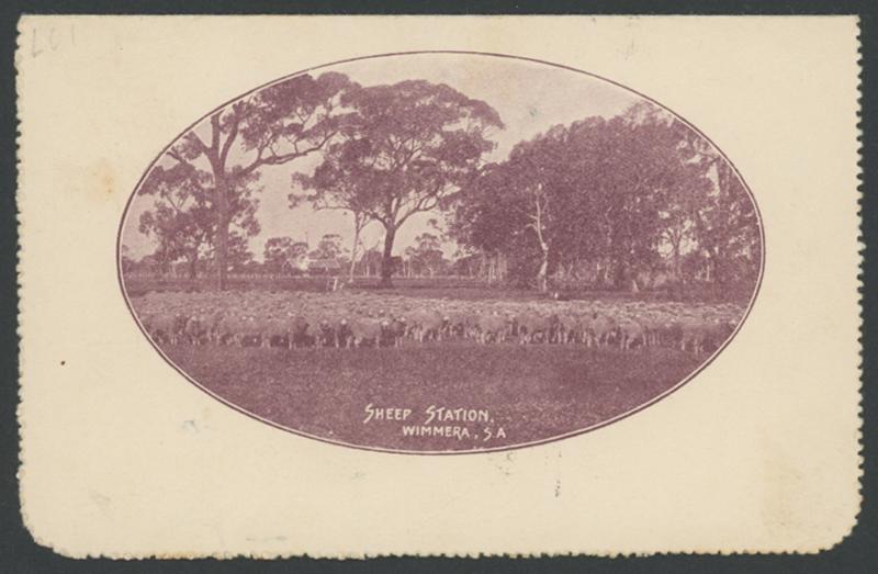LETTER CARDS: Scenic group comprising KGV Fullface 1d unused (stuck) & used ('SHEEP STATION/ WIMMERA SA' error, after discovery,