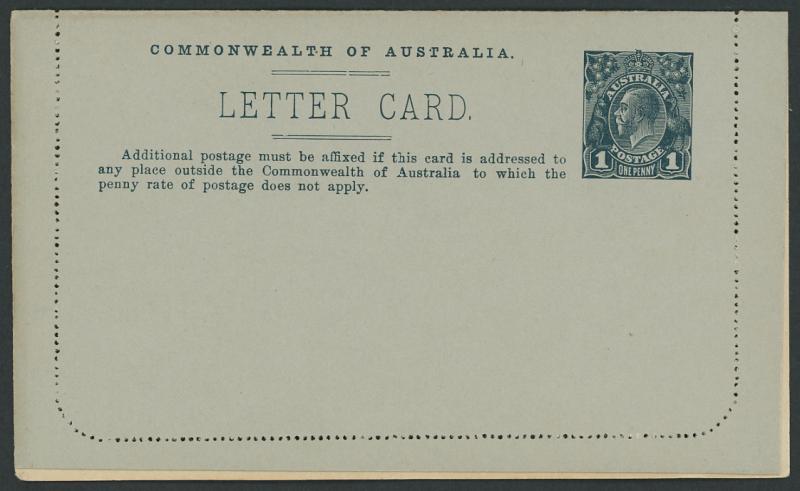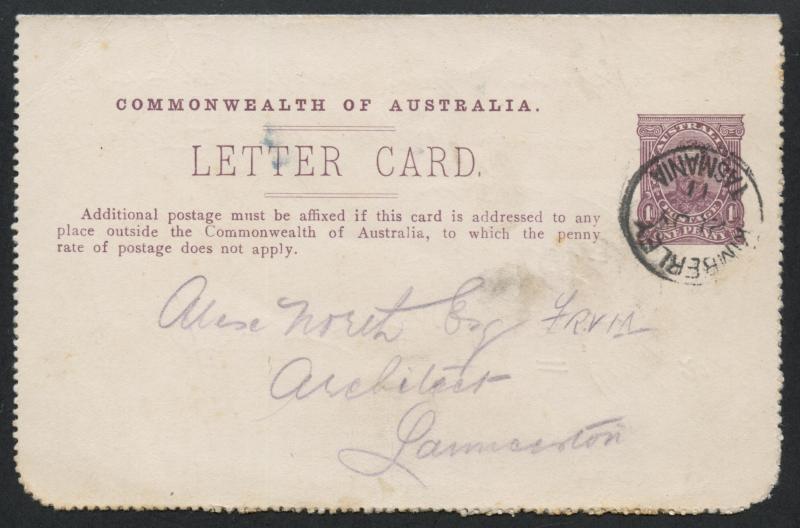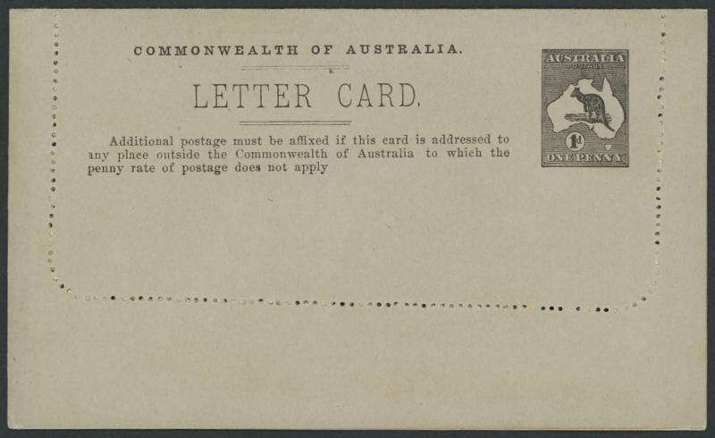 LETTER CARDS: 1913 Kangaroo 1d 'COUNTRY SCENE/TASMANIA' in bright violet with Double Perforations, sensible perf reinforcement,