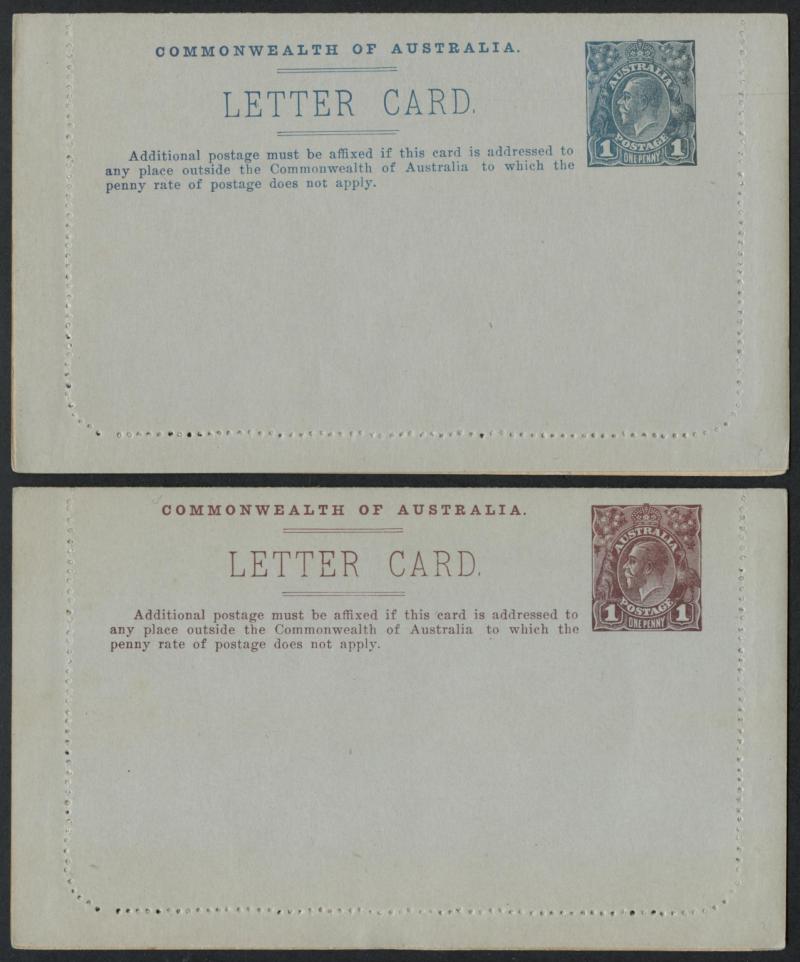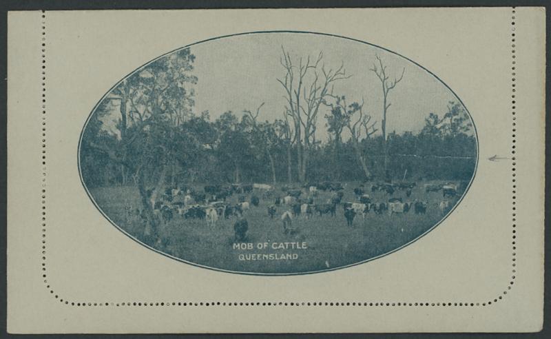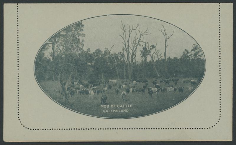 LETTER CARDS: 1914-18 KGV Sideface 1d Die 1 Perf 12½ ACSC LC18 'MOB OF CATTLE/QUEENSLAND' in grey-black, and another in