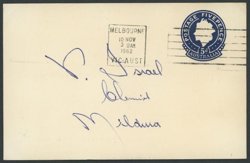 used at Melbourne in 1962, minor corner bend, Cat $750. Unrecorded user. (Image1) (Image2)