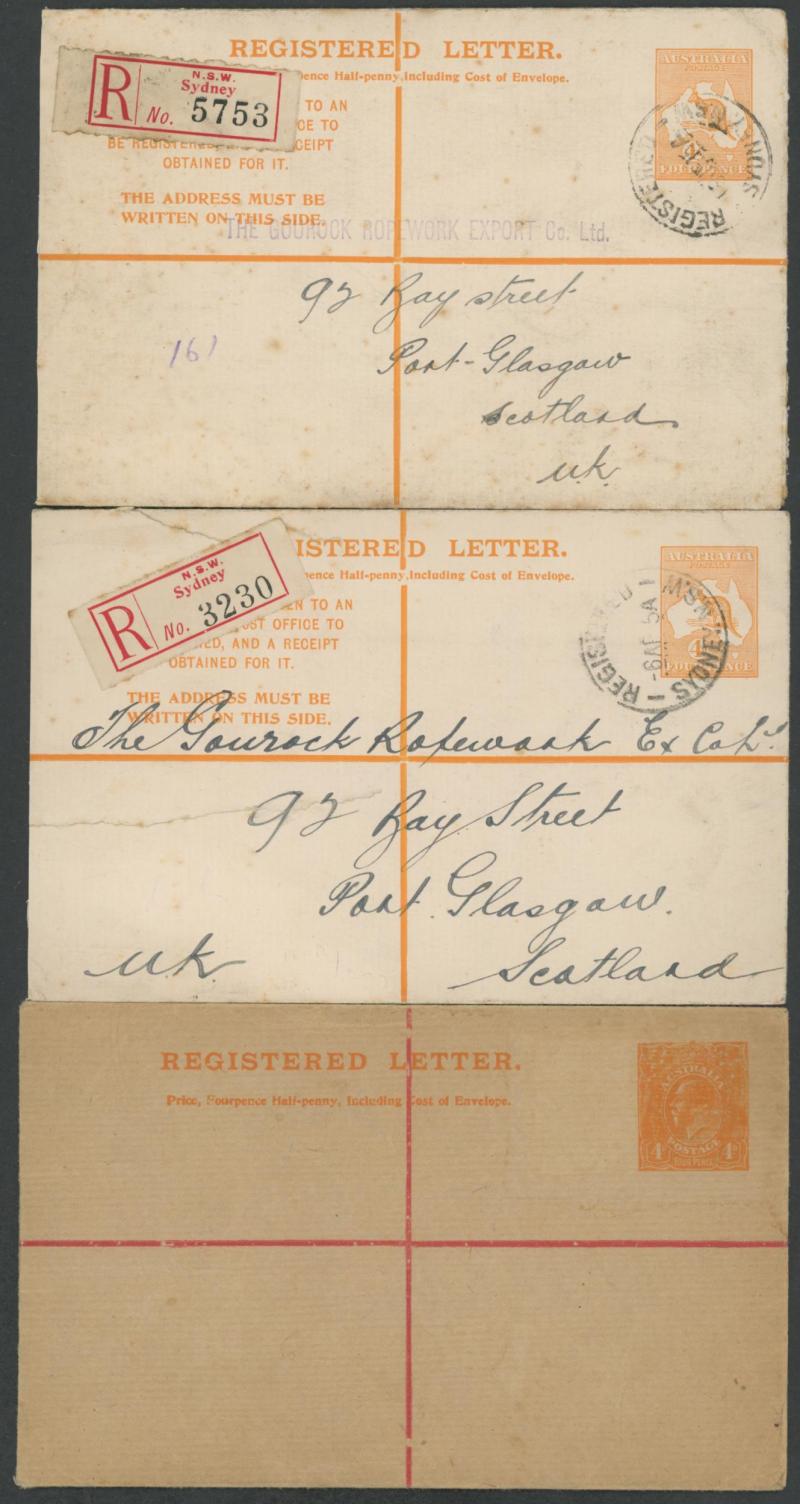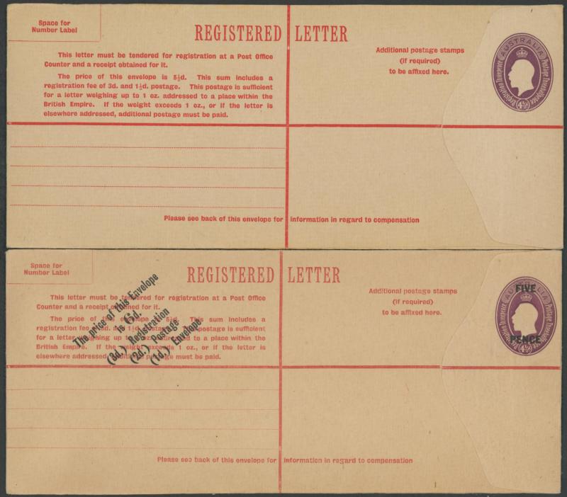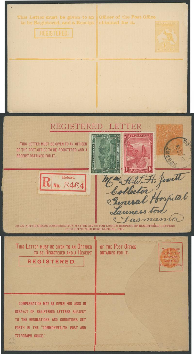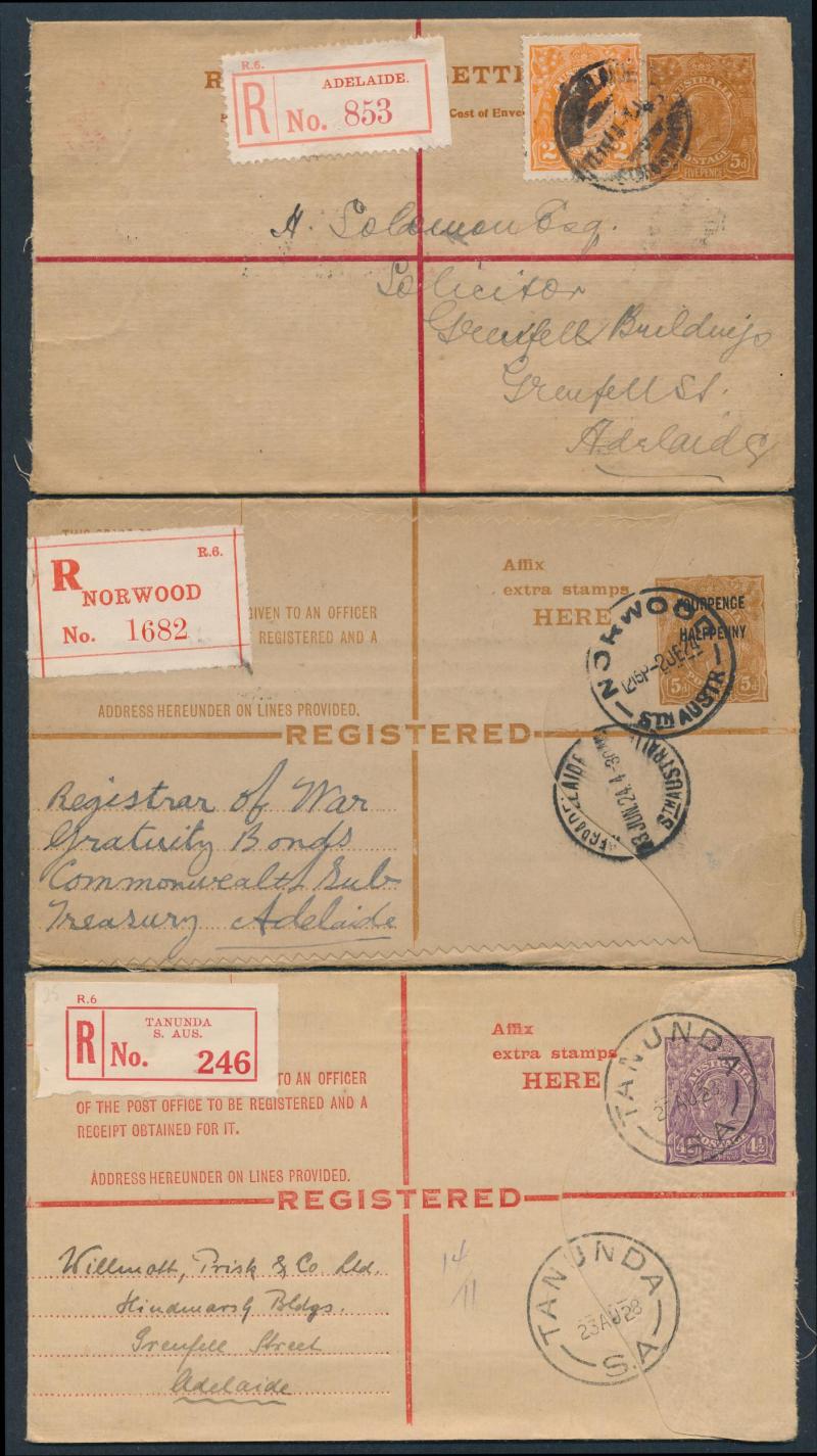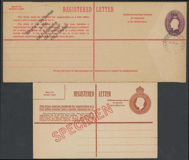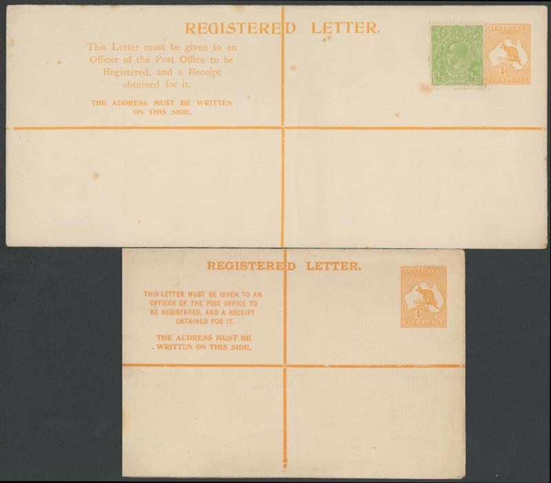 REGISTRATION ENVELOPES: Mostly unused selection comprising Kangaroo 4d with boxed 'REGISTERED' ACSC RE1, 'REGISTERED LETTER' both