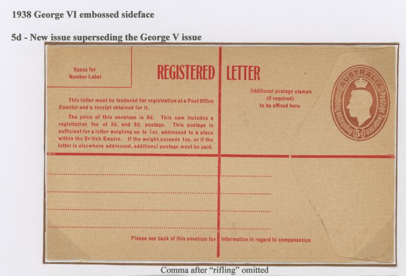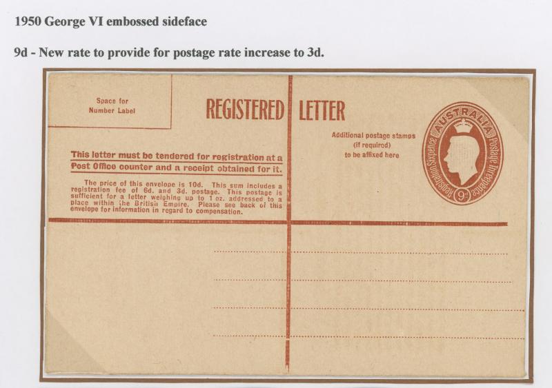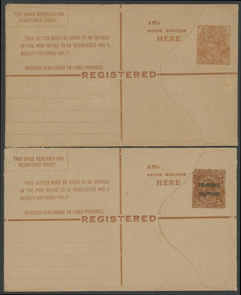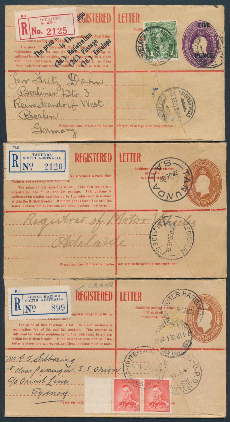 REGISTRATION ENVELOPES: All-different batch including Kangaroo 4d uprated with KGV 1d red x3, KGV uprated with KGV 2d orange, Oval