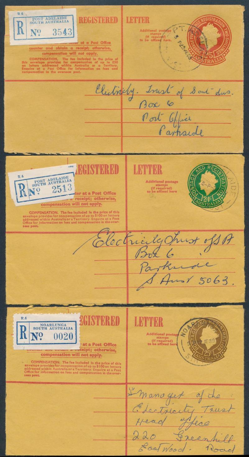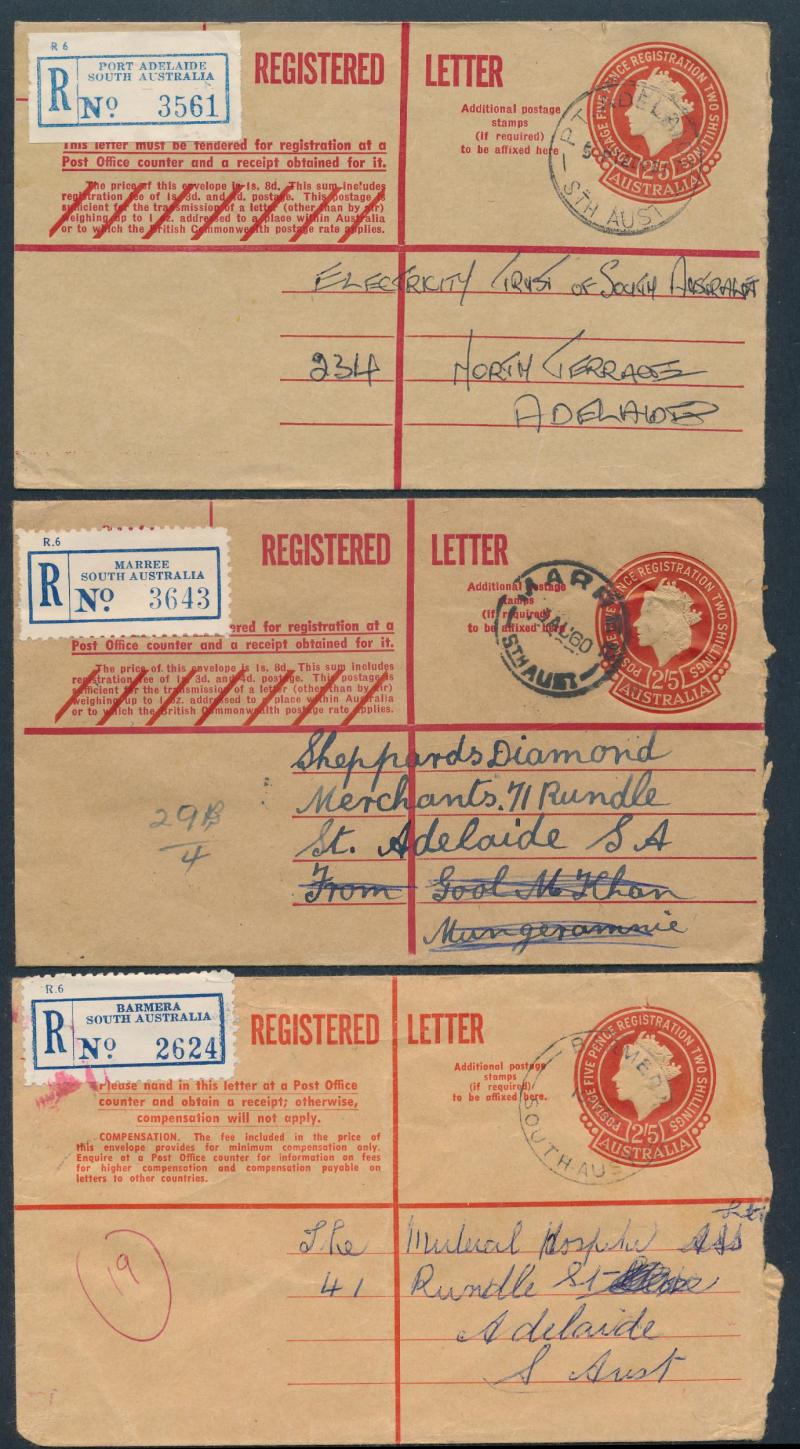 4½d long envelope uprated with KGV ½d & 2d KSmith, QEII 2/5d with 10 & with 11 Obliterating Bars on the Reverse, 2/5d with Helecon Ink, 24c with '£50 ($100)' in the Text, etc, all used in South Australia, fine to very fine.