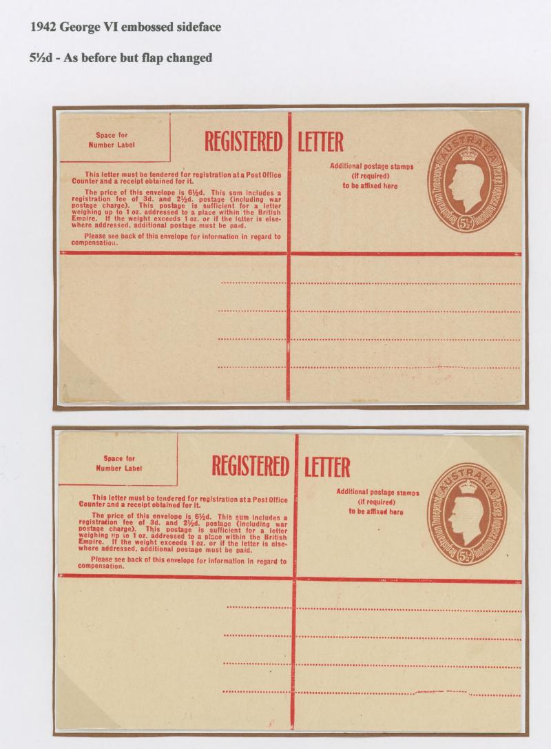 REGISTRATION ENVELOPES: 1942 KGVI with Flap Folded to the Reverse 5d brown with the Flap at Right ACSC RE 30, used with Geelong cds