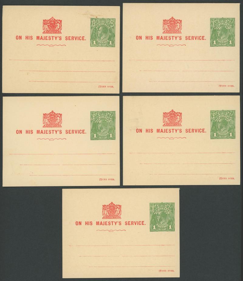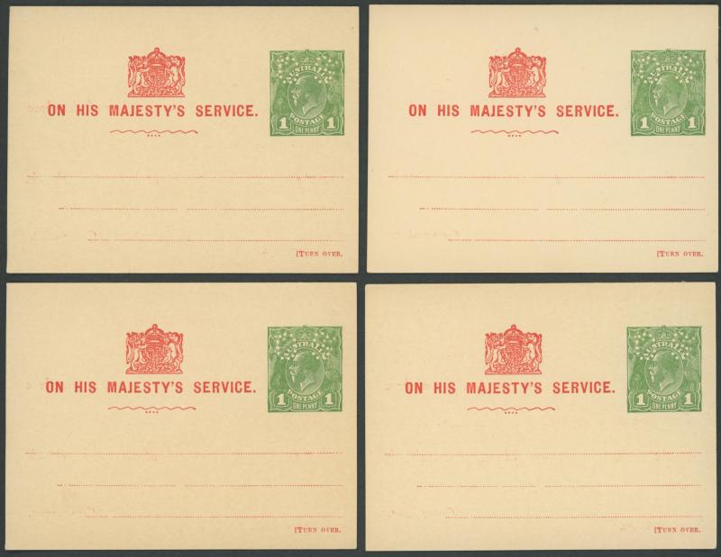 POSTAL CARDS - OFFICIAL KGV 1d green OHMS School Committee advice cards with Solid 'OS' in Die (blemish on front), and with Dotted