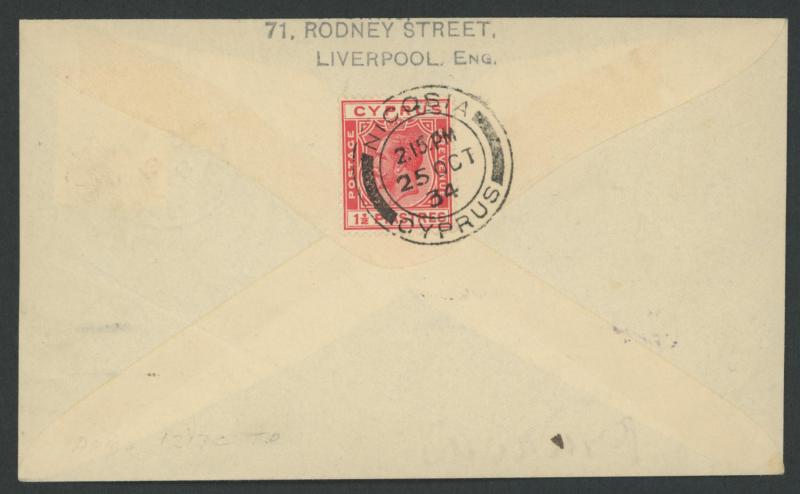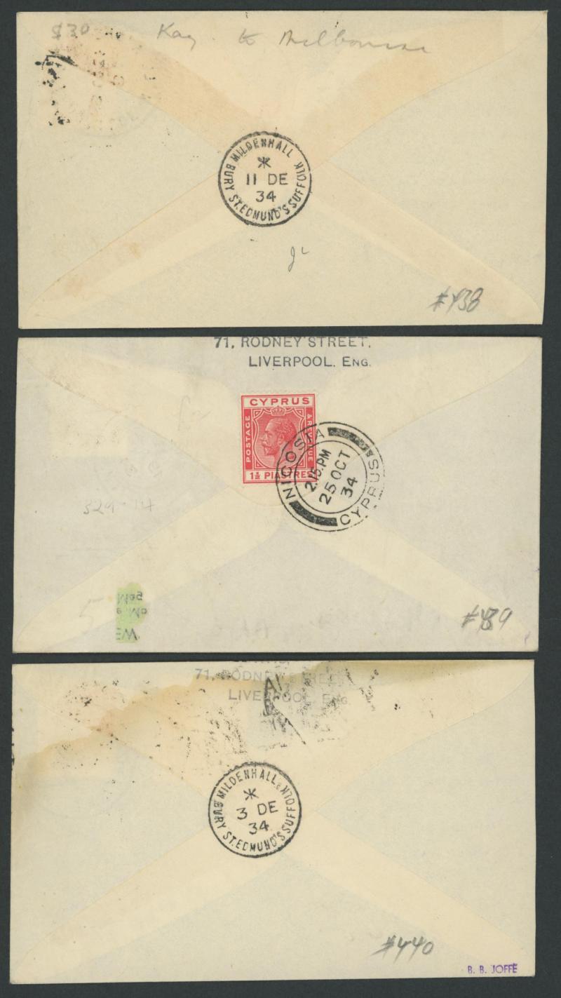 reverse by 'NICOSIA/25OCT/34/CYPRUS' cds, signed "CN Hill" and "CG Davies", AAMC 439a, Cat $450. The first example we have offered.