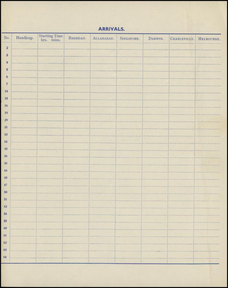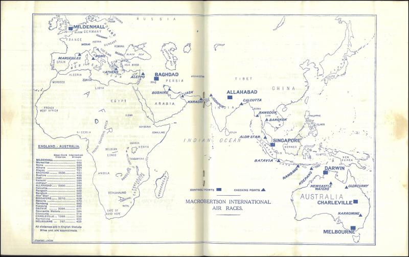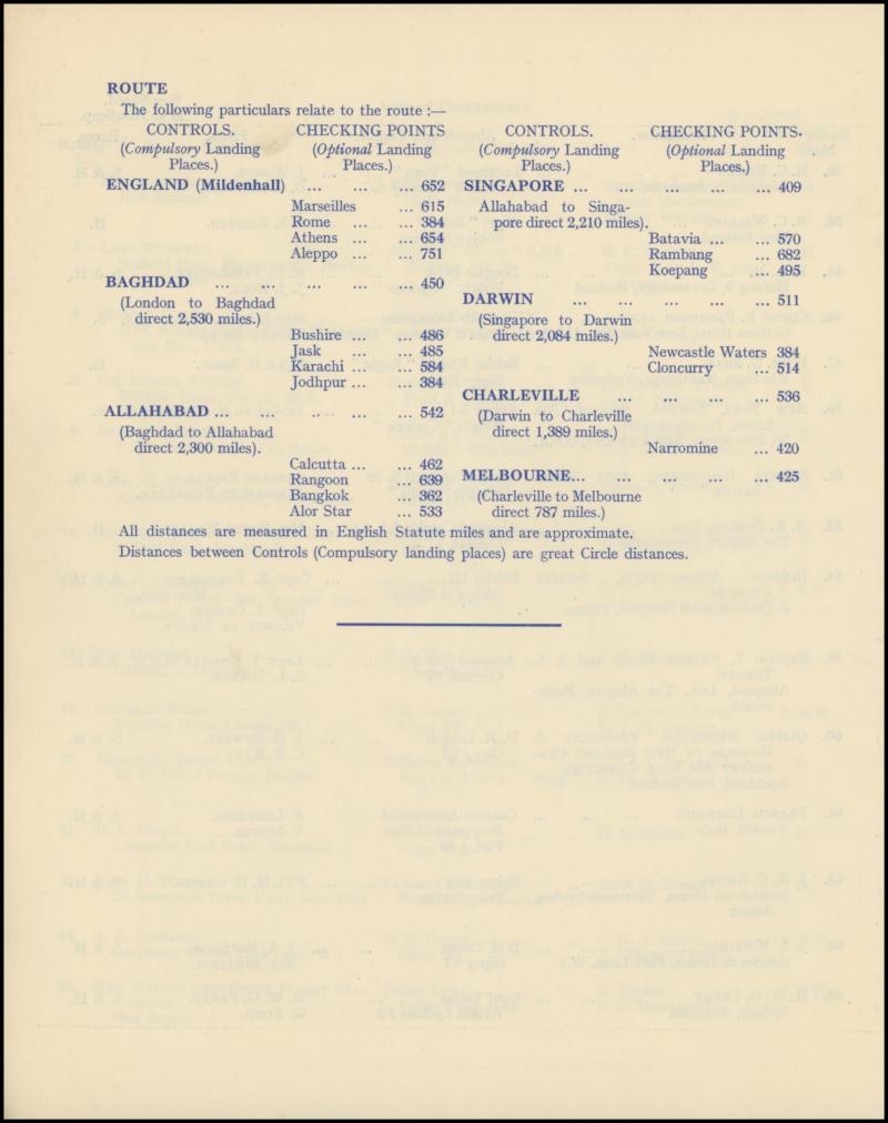 Bucharest) and "JJ Mollison" & "Amy Mollison" (withdrew at Allahabad), also "HD Gilman" & "Jas KC Baines" (crashed in Italy & both killed), etc. Ex Derrick Ray. A marvellous memento of this important event in aviation, believed to be unique, and in