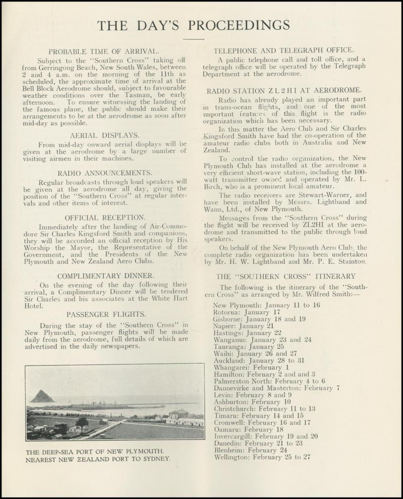 1933 (Jan 11) 16pp quarto-size brochure 'Souvenir of the Flight of/Sir Charles Kingsford Smith/from/Sydney to New Plymouth',